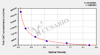To assess the linearity of the assay, samples were spiked with high concentrations of fish CAT in various matrices and diluted with the Sample Diluent to produce samples with values within the dynamic range of the assay. Sample Serum(n=4) 1:100 Average % 95 Range % 91-99 1:200 Average % 103 Range % 99-107 1:400 Average % 98 Range % 93-105 1:800 Average % 92 Range % 87-95 -