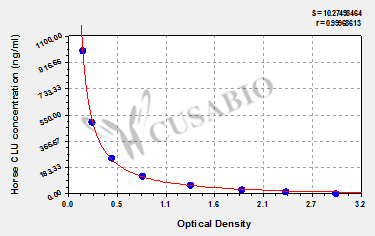 To assess the linearity of the assay, samples were spiked with high concentrations of horse CLU in various matrices and diluted with the Sample Diluent to produce samples with values within the dynamic range of the assay. Sample Serum(n=4) 1:1000 Average % 101 Range % 95-106 1:2000 Average % 90 Range % 85-94 1:4000 Average % 98 Range % 92-102 1:8000 Average % 100 Range % 94-104 -
