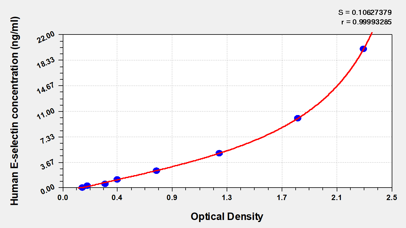 To assess the linearity of the assay, samples were spiked with high concentrations of human E-selectin in various matrices and diluted with the Sample Diluent to produce samples with values within the dynamic range of the assay.