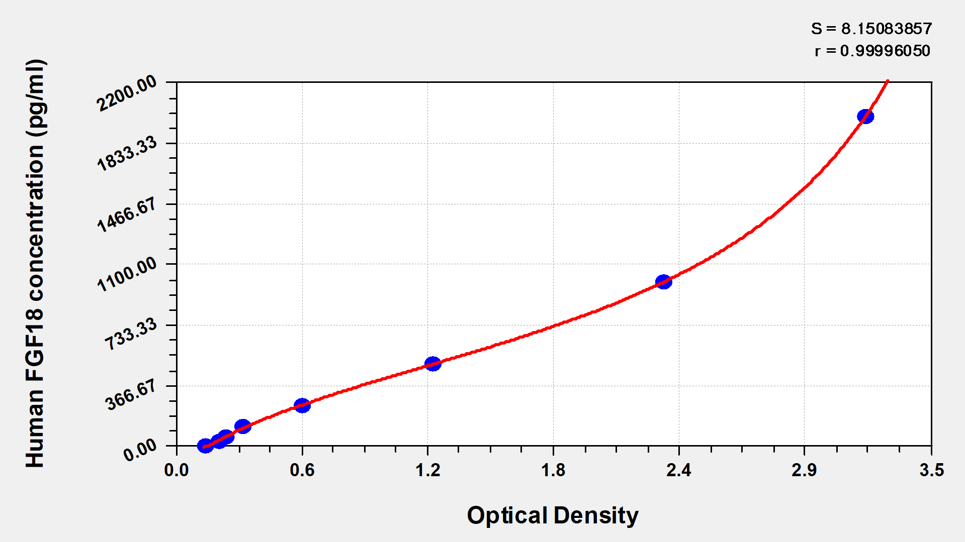 To assess the linearity of the assay, samples were spiked with high concentrations of human FGF18 in various matrices and diluted with the Sample Diluent to produce samples with values within the dynamic range of the assay.