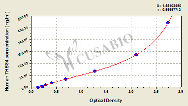 To assess the linearity of the assay, samples were spiked with high concentrations of human THBS4 in various matrices and diluted with the Sample Diluent to produce samples with values within the dynamic range of the assay. Sample Serum(n=4) 1:1 Average % 93 Range % 89-97 1:2 Average % 101 Range % 98-105 1:4 Average % 99 Range % 95-104 1:8 Average % 92 Range % 88-96 -