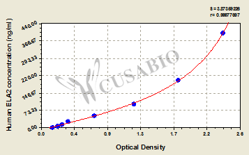 To assess the linearity of the assay, samples were spiked with high concentrations of human ELA2 in various matrices and diluted with the Sample Diluent to produce samples with values within the dynamic range of the assay. Sample Serum(n=4) 1:1 Average % 87 Range % 82-95 1:2 Average % 85 Range % 81-89 1:4 Average % 95 Range % 91-99 1:8 Average % 97 Range % 92-104 -