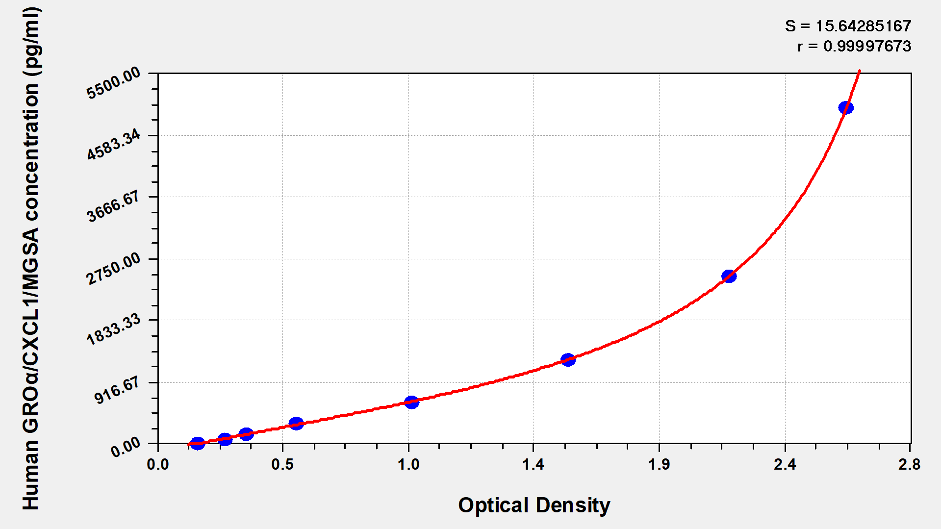 To assess the linearity of the assay, samples were spiked with high concentrations of human GROα/CXCL1/MGSA in various matrices and diluted with the Sample Diluent to produce samples with values within the dynamic range of the assay.