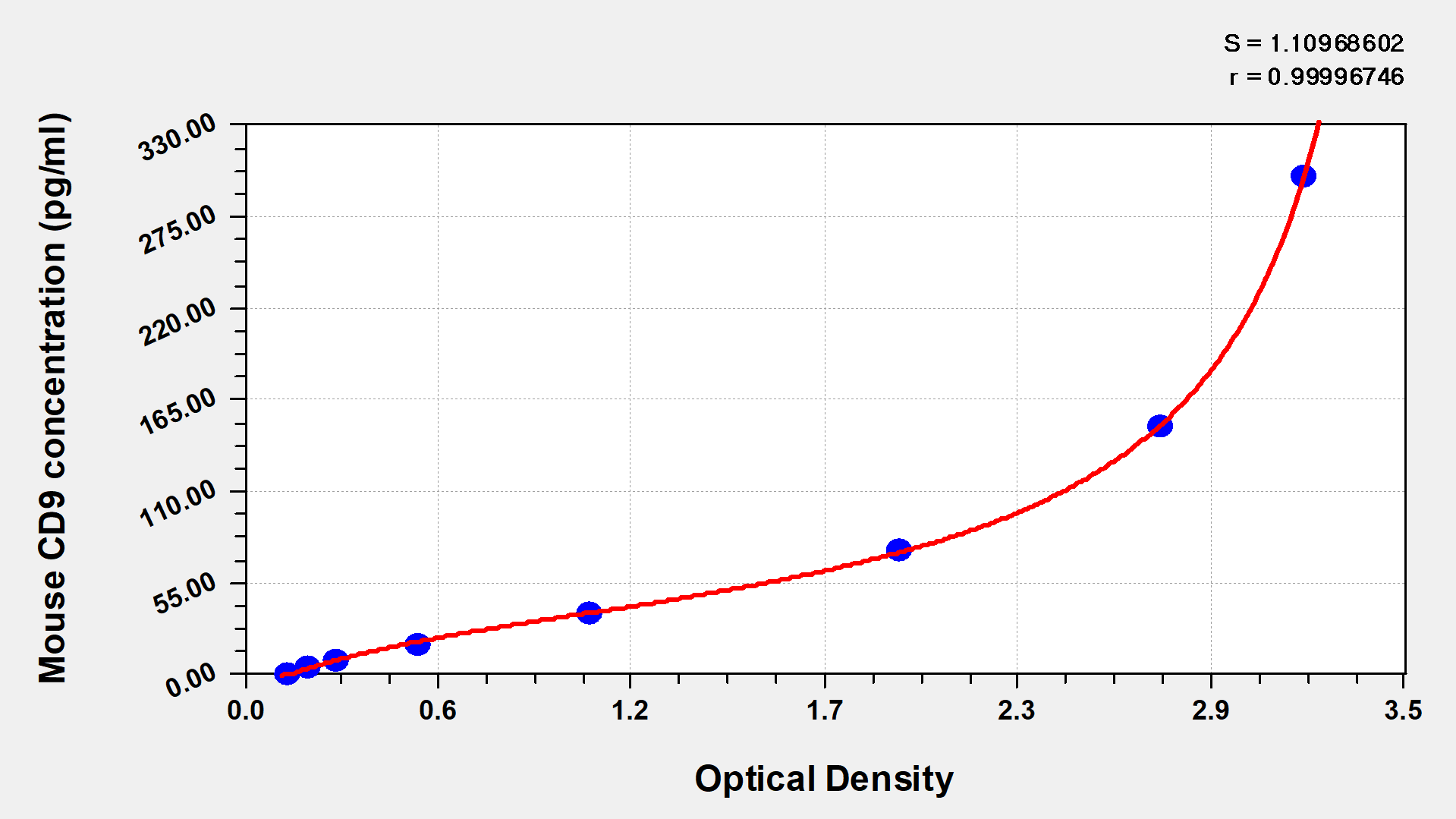 To assess the linearity of the assay, samples were spiked with high concentrations of mouse CD9 in various matrices and diluted with the Sample Diluent to produce samples with values within the dynamic range of the assay.
