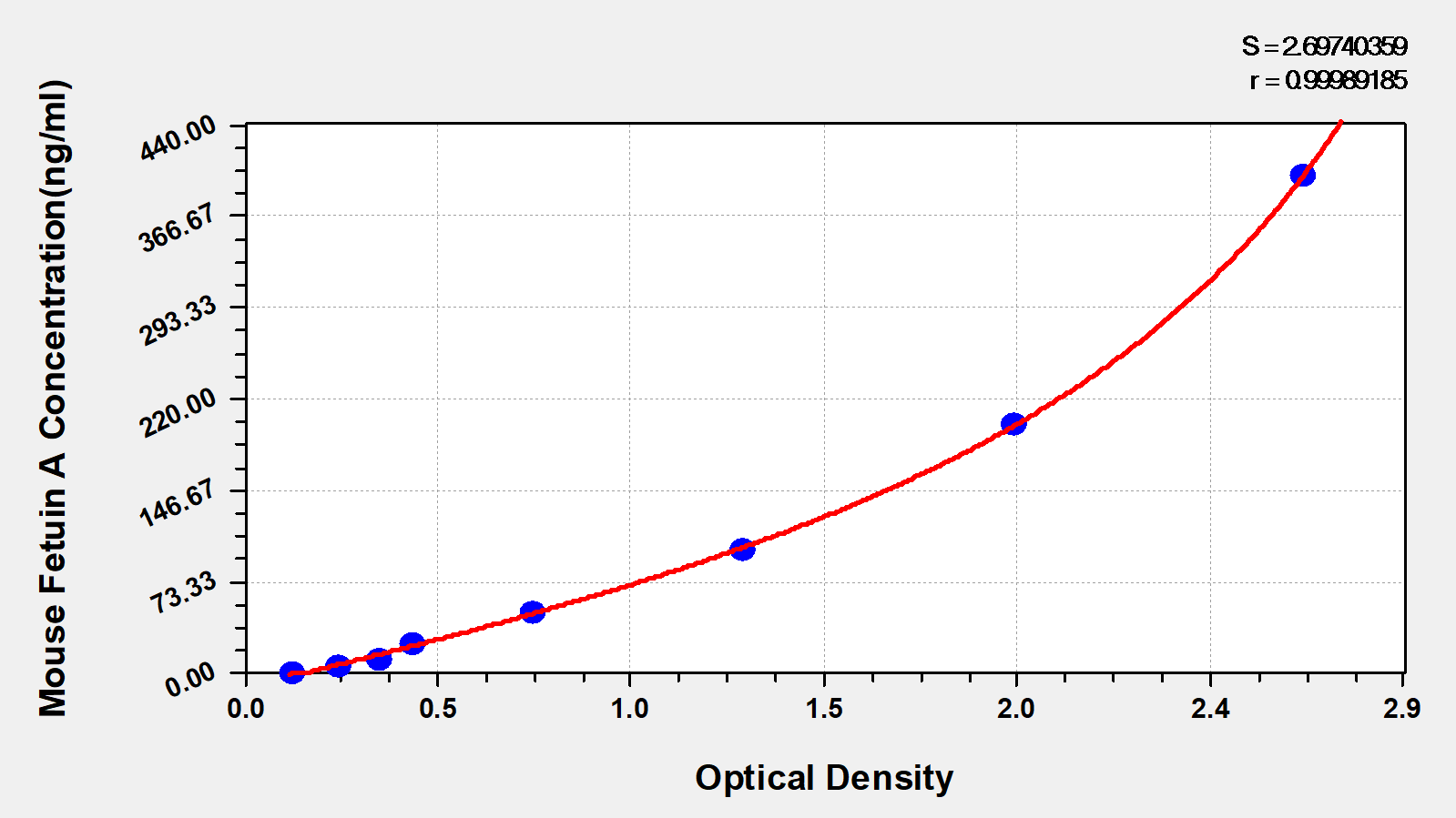 To assess the linearity of the assay, samples were spiked with high concentrations of mouse fetuin A in various matrices and diluted with the Sample Diluent to produce samples with values within the dynamic range of the assay.