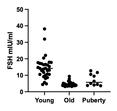 - These mice showed an increase in FSH levels, but they remained in a prepubertal state. Together with previous findings, our data indicate that leptin-selective action in gonadotropes serves a role in adult reproductive physiology but is not sufficient to allow pubertal maturation in mice. PMID: 27101301