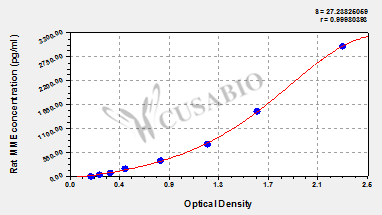 To assess the linearity of the assay, samples were spiked with high concentrations of rat MME in various matrices and diluted with the Sample Diluent to produce samples with values within the dynamic range of the assay. Sample Serum(n=4) 1:1 Average % 92 Range % 89-96 1:2 Average % 96 Range % 91-103 1:4 Average % 98 Range % 93-101 1:8 Average % 95 Range % 90-99 -