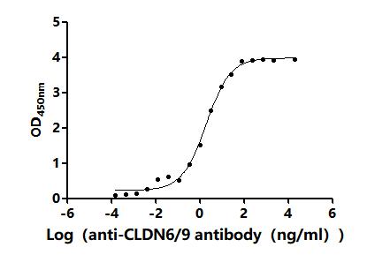 Measured by its binding ability in a functional ELISA. Immobilized Human CLDN6 at 2 μg/ml can bind Anti-CLDN6/9 recombinant antibody (CSB-RA005508MA1HU). The EC50 is 1.243-2.426 ng/mL. Biological Activity Assay -