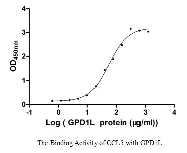 生物活性:Measured by its binding ability in a functional ELISA. Immobilized CCL5 at 2 μg/ml can bind human GPD1L, the EC50 of human GPD1L protein is 47.34-66.33 μg/ml.