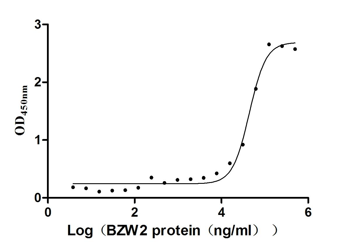 生物活性:Measured by its binding ability in a functional ELISA. Immobilized OMA1 at 5 μg/ml can bind human BZW2, the EC50 of human BZM2 is 45.42-72.22 μg/ml.