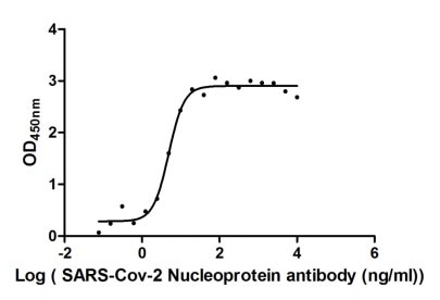 Measured by its binding ability in a functional ELISA. Immobilized SARS-CoV-2-N at 2 μg/ml can bind SARS-CoV-2-N Antibody (CSB-RA33255A1GMY), the EC50 of SARS-CoV-2-N protein is 1.368 -1.804 ng/ml. -