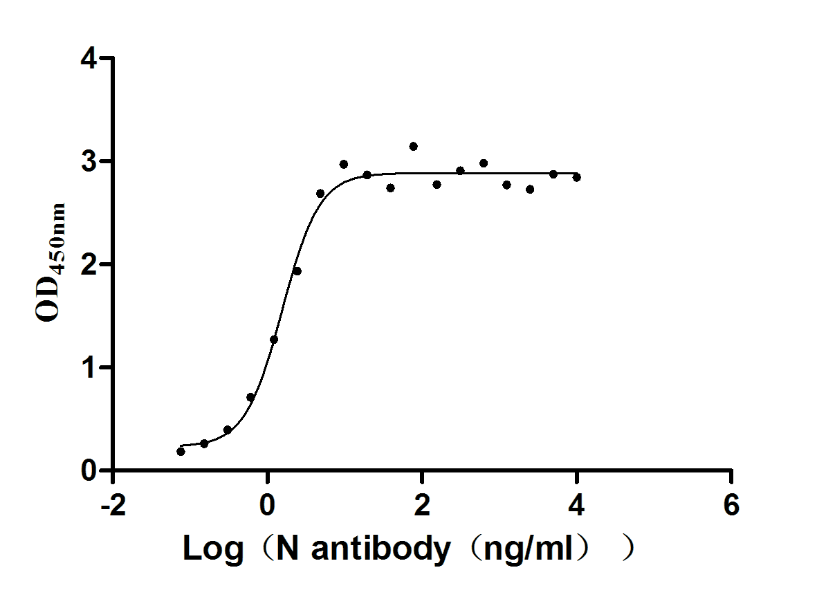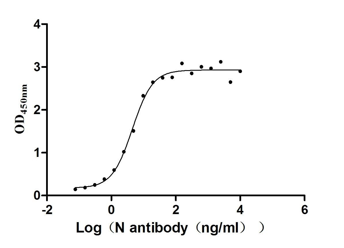 Measured by its binding ability in a functional ELISA. Immobilized N(CSB-EP3325GMY(M14)) at 2 μg/ml can bind N Recombinant Antibody(CSB-RA33255A1GMY), the EC50 of N Recombinant Antibody is 1.304 - 1.875 ng/ml.