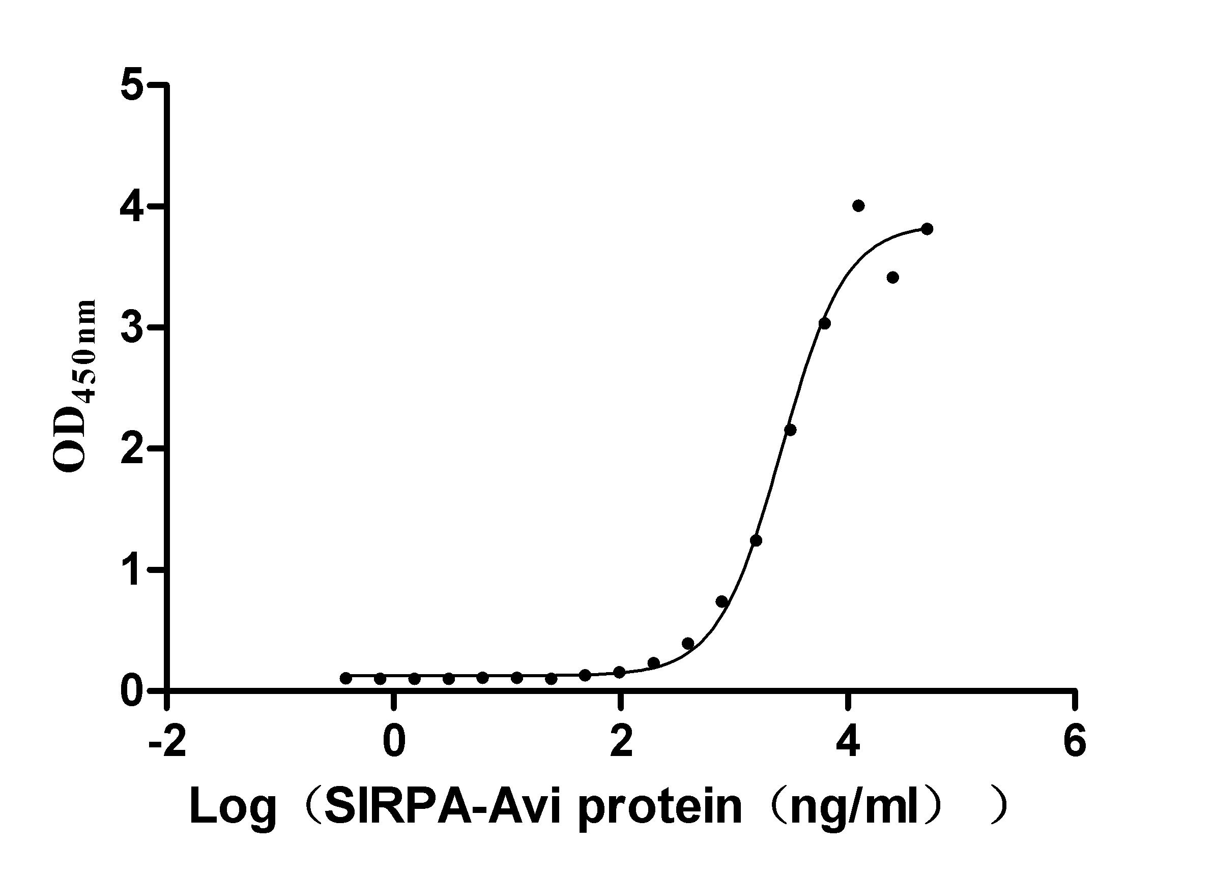 Measured by its binding ability in a functional ELISA. Immobilized SIRPA at 2 μg/ml can bind human CD47(CSB-MP004940HU), the EC50 of human SIRPA protein is 58.30-85.04 ng/ml. -