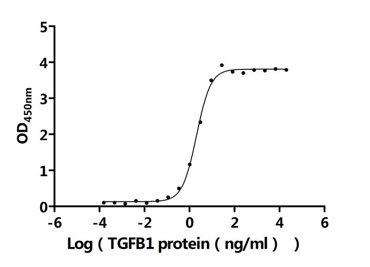 Measured by its binding ability in a functional ELISA. Immobilized Mouse Itgav&Itgb6 at 2 μg/ml can bind Human TGFB1 (CSB-MP023446HU(A4)c9). The EC50 is 1.891-2.246 ng/mL. Biological Activity Assay -