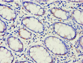 Immunohistochemistry of paraffin-embedded human colon cancer using CSB-PA871400ESR2HU at dilution of 1:100