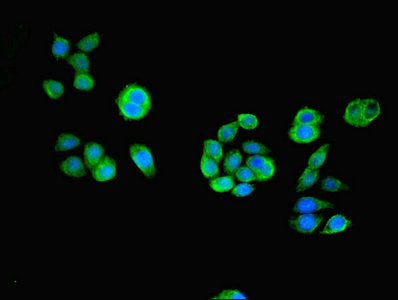 Immunofluorescent analysis of PC-3 cells using CSB-PA668210LA01HU at dilution of 1:100 and Alexa Fluor 488-congugated AffiniPure Goat Anti-Rabbit IgG(H+L)
