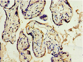 Immunohistochemistry of paraffin-embedded human placenta tissue using CSB-PA861182ESR2HU at dilution of 1:100