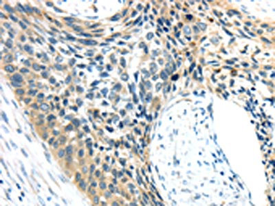 The image on the left is immunohistochemistry of paraffin-embedded Human esophagus cancer tissue using CSB-PA225304(AEBP1 Antibody) at dilution 1/25, on the right is treated with synthetic peptide. (Original magnification: ×200)