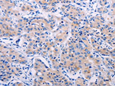The image on the left is immunohistochemistry of paraffin-embedded Human lung cancer tissue using CSB-PA693559(AGT Antibody) at dilution 1/50, on the right is treated with synthetic peptide. (Original magnification: ×200)