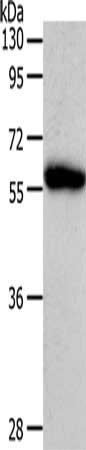Gel: 10%SDS-PAGE, Lysate: 40 μg, Lane: Human liver cancer tissue, Primary antibody: CSB-PA693559(AGT Antibody) at dilution 1/1100, Secondary antibody: Goat anti rabbit IgG at 1/8000 dilution, Exposure time: 5 minutes
