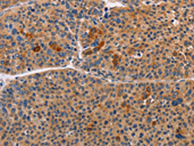 The image on the left is immunohistochemistry of paraffin-embedded Human liver cancer tissue using CSB-PA272721(ALDH3A1 Antibody) at dilution 1/55, on the right is treated with fusion protein. (Original magnification: ×200)