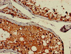 Immunohistochemistry of paraffin-embedded human testis tissue using CSB-PA001861LA01HU at dilution of 1:100