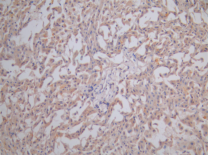 IHC image of CSB-PA009485 diluted at 1:100 and staining in paraffin-embedded human liver tissue performed on a Leica BondTM system. After dewaxing and hydration, antigen retrieval was mediated by high pressure in a citrate buffer (pH 6.0). Section was blocked with 10% normal goat serum 30min at RT. Then primary antibody (1% BSA) was incubated at 4°C overnight. The primary is detected by a Goat anti-rabbit polymer IgG labeled by HRP and visualized using 0.05% DAB.