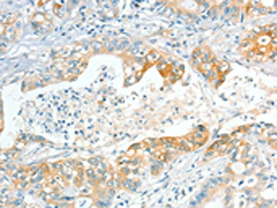 The image on the left is immunohistochemistry of paraffin-embedded Human gastric cancer tissue using CSB-PA983797(APOL2 Antibody) at dilution 1/80, on the right is treated with synthetic peptide. (Original magnification: ×200)