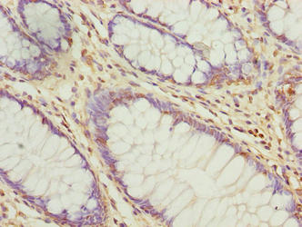 Immunohistochemistry of paraffin-embedded human colon cancer using CSB-PA867178LA01HU at dilution of 1:100