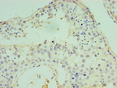 Immunohistochemistry of paraffin-embedded human testis tissue using CSB-PA002279ESR1HU at dilution of 1:100