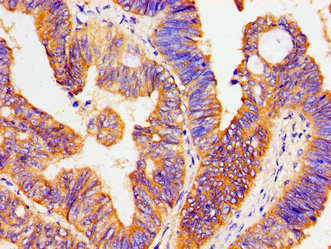 Immunohistochemistry of paraffin-embedded human colon cancer using CSB-PA002326LA01HU at dilution of 1:100