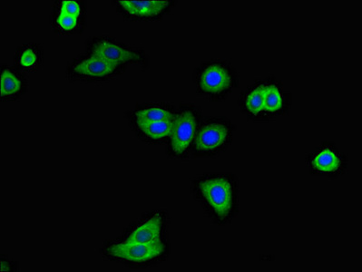 Immunofluorescent analysis of HepG2 cells using CSB-PA859520LA01HU at dilution of 1:100 and Alexa Fluor 488-congugated AffiniPure Goat Anti-Rabbit IgG(H+L)