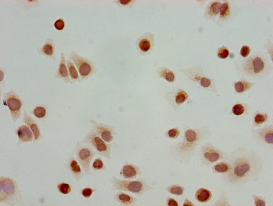 Immunocytochemistry analysis of Hela cells using CSB-PA010418OA23acHU at dilution of 1:100