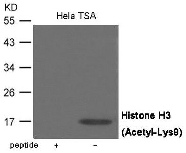 免疫原:Peptide sequence around acetylation site of Lysine 9(T-A-R(p)-K-S) derived from Human Histone H3.