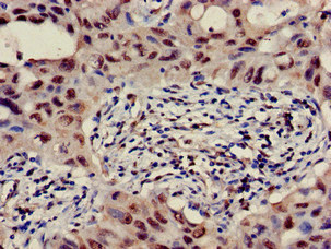 Immunohistochemistry of paraffin-embedded human lung cancer using CSB-PA002492LA01HU at dilution of 1:100