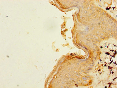 Immunohistochemistry of paraffin-embedded human skin tissue using CSB-PA002500LA01HU at dilution of 1:100