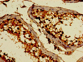 Immunohistochemistry of paraffin-embedded human testis tissue using CSB-PA884512LA01HU at dilution of 1:100