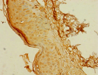 Immunohistochemistry of paraffin-embedded human skin tissue using CSB-PA675467LA01HU at dilution of 1:100