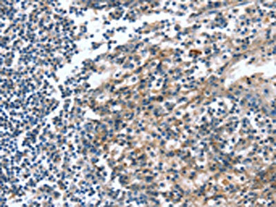 The image on the left is immunohistochemistry of paraffin-embedded Human tonsil tissue using CSB-PA442042(CAGE1 Antibody) at dilution 1/15, on the right is treated with synthetic peptide. (Original magnification: ×200)