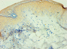 Immunohistochemistry of paraffin-embedded human skin tissue using CSB-PA873713DSR2HU at dilution of 1:100