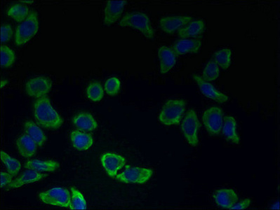 Immunofluorescent analysis of LO2 cells using CSB-PA842731LA01HU at dilution of 1:100 and Alexa Fluor 488-congugated AffiniPure Goat Anti-Rabbit IgG(H+L)