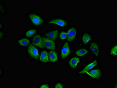 Immunofluorescent analysis of A549 cells using CSB-PA004840LA01HU at dilution of 1:100 and Alexa Fluor 488-congugated AffiniPure Goat Anti-Rabbit IgG(H+L)