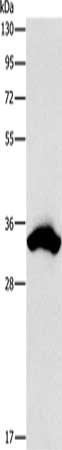 Gel: 15%SDS-PAGE, Lysate: 40 μg, Lane: 293T cells, Primary antibody: CSB-PA936102(CDCA8 Antibody) at dilution 1/900, Secondary antibody: Goat anti rabbit IgG at 1/8000 dilution, Exposure time: 1 second