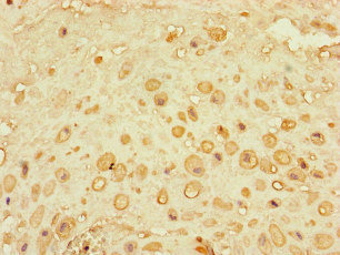 Immunohistochemistry of paraffin-embedded human ovarian cancer using CSB-PA005241LA01HU at dilution of 1:100