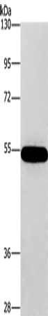 Gel: 8%SDS-PAGE, Lysate: 40 μg, Lane: 293T cells, Primary antibody: CSB-PA439589(CNDP1 Antibody) at dilution 1/320, Secondary antibody: Goat anti rabbit IgG at 1/8000 dilution, Exposure time: 10 seconds