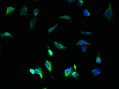 Immunofluorescent analysis of U251 cells using CSB-PA004170LA01HU at dilution of 1:100 and Alexa Fluor 488-congugated AffiniPure Goat Anti-Rabbit IgG(H+L)