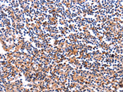 The image on the left is immunohistochemistry of paraffin-embedded Human tonsil tissue using CSB-PA824118(COL20A1 Antibody) at dilution 1/40, on the right is treated with fusion protein. (Original magnification: ×200)