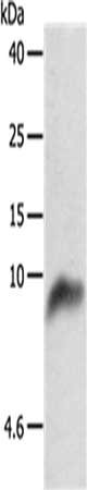 Gel: 10+15%SDS-PAGE, Lysate: 50 μg, Lane: 293T cells, Primary antibody: CSB-PA017662(COX7B Antibody) at dilution 1/800, Secondary antibody: Goat anti rabbit IgG at 1/8000 dilution, Exposure time: 40 seconds