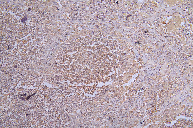Immunohistochemistry of paraffin-embedded human lymph node tissue using CSB-PA822164ESR1HU at dilution of 1:100