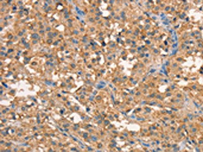 The image on the left is immunohistochemistry of paraffin-embedded Human thyroid cancer tissue using CSB-PA256217(CRELD1 Antibody) at dilution 1/40, on the right is treated with synthetic peptide. (Original magnification: ×200)